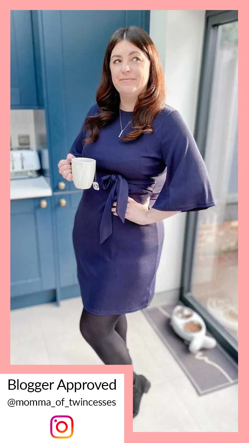 CurveWow Navy Ribbed Belted Skater Dress
