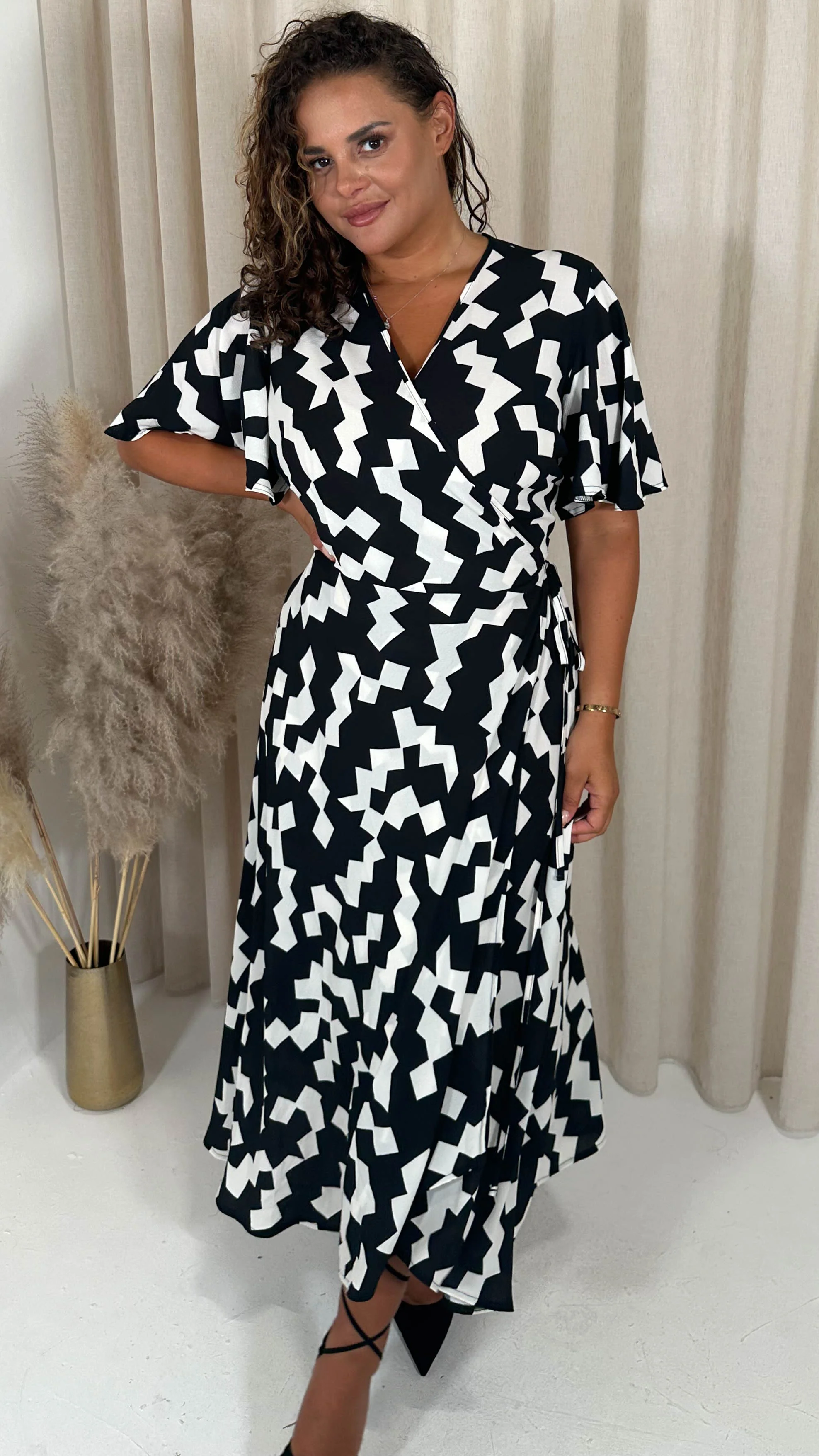 CurveWoW Angel Sleeve Wrap Dress Mono