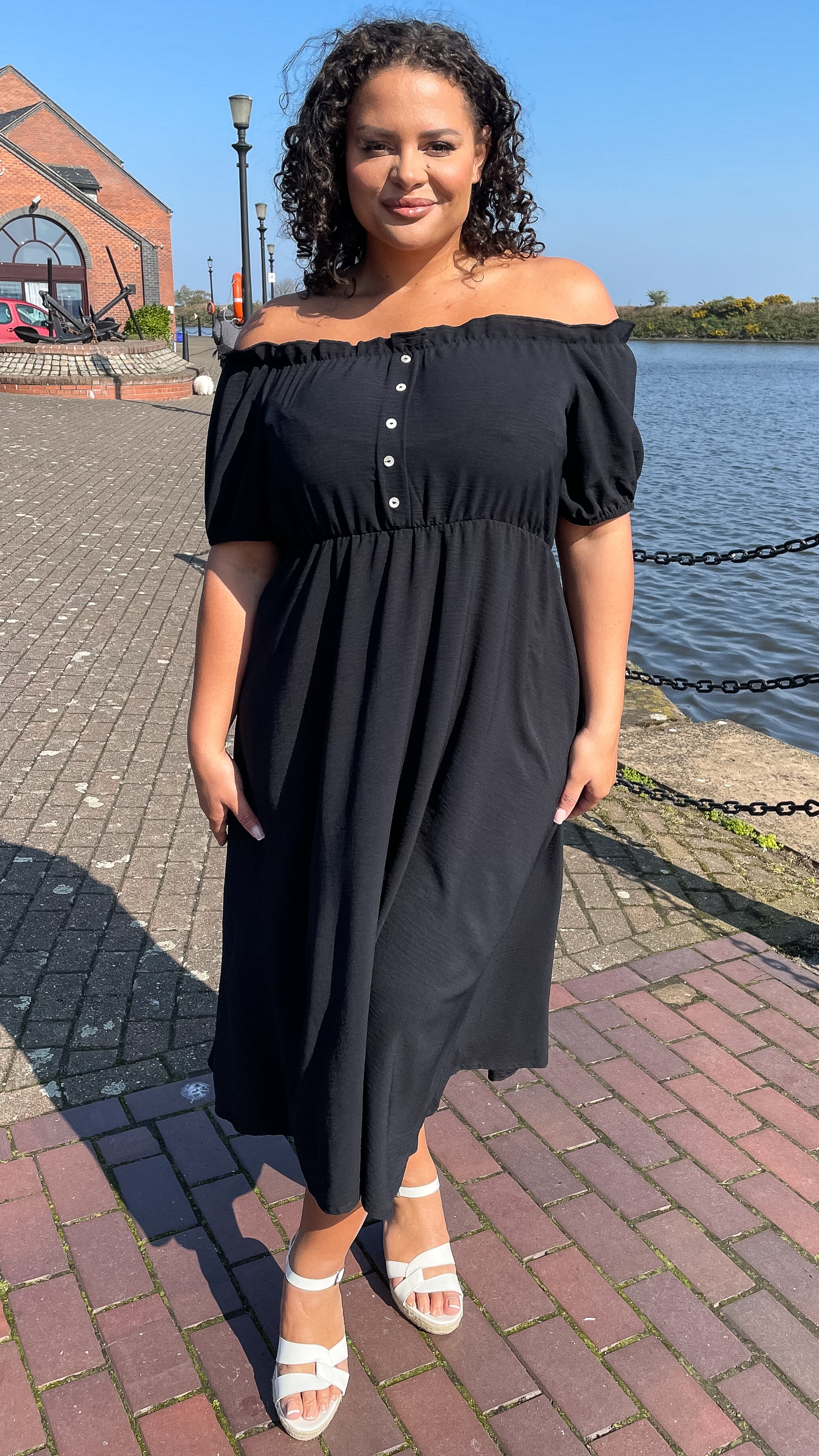 CurveWow Bardot Midi Dress Black