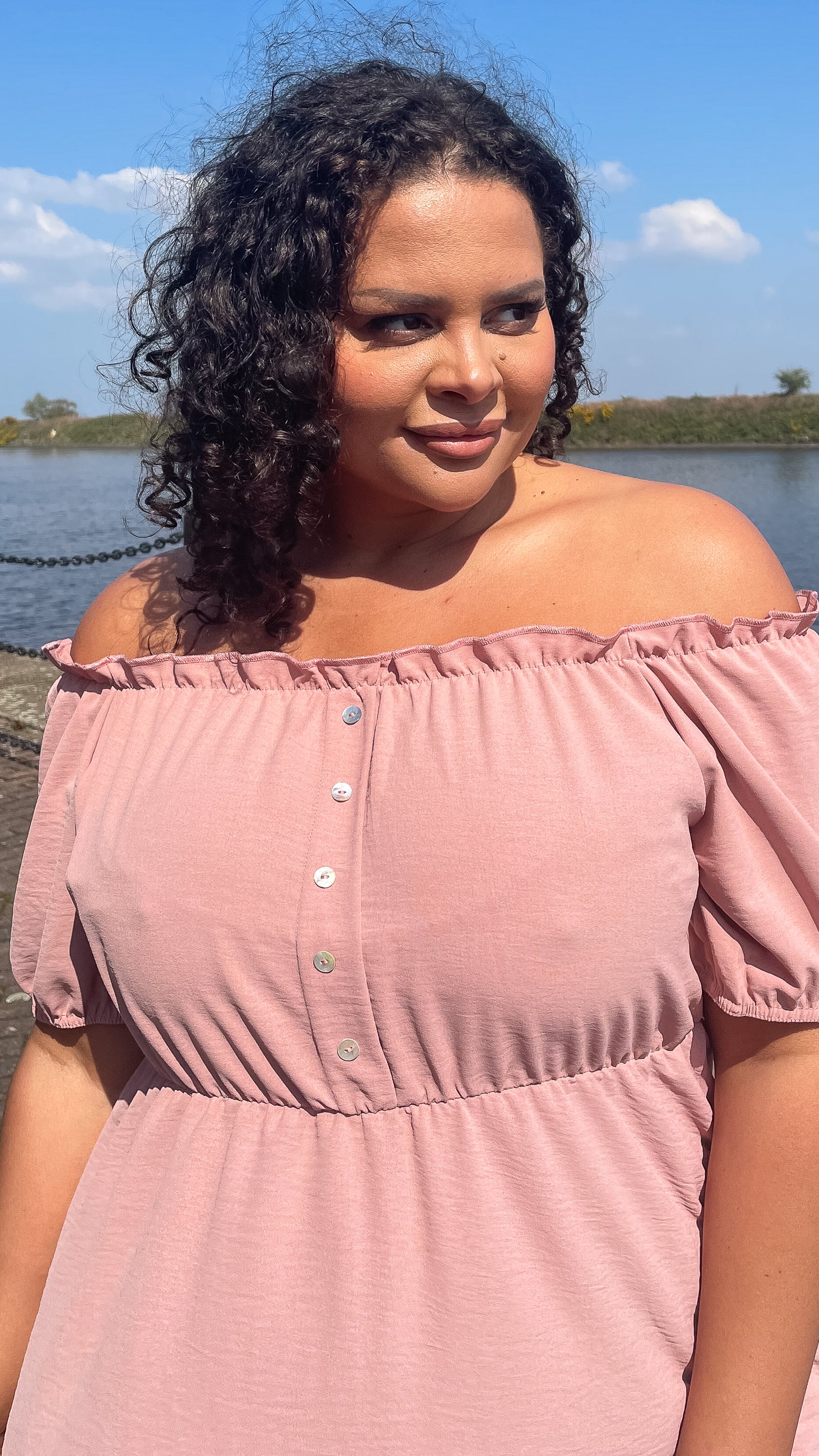 CurveWow Button Bardot Top Dusty Pink