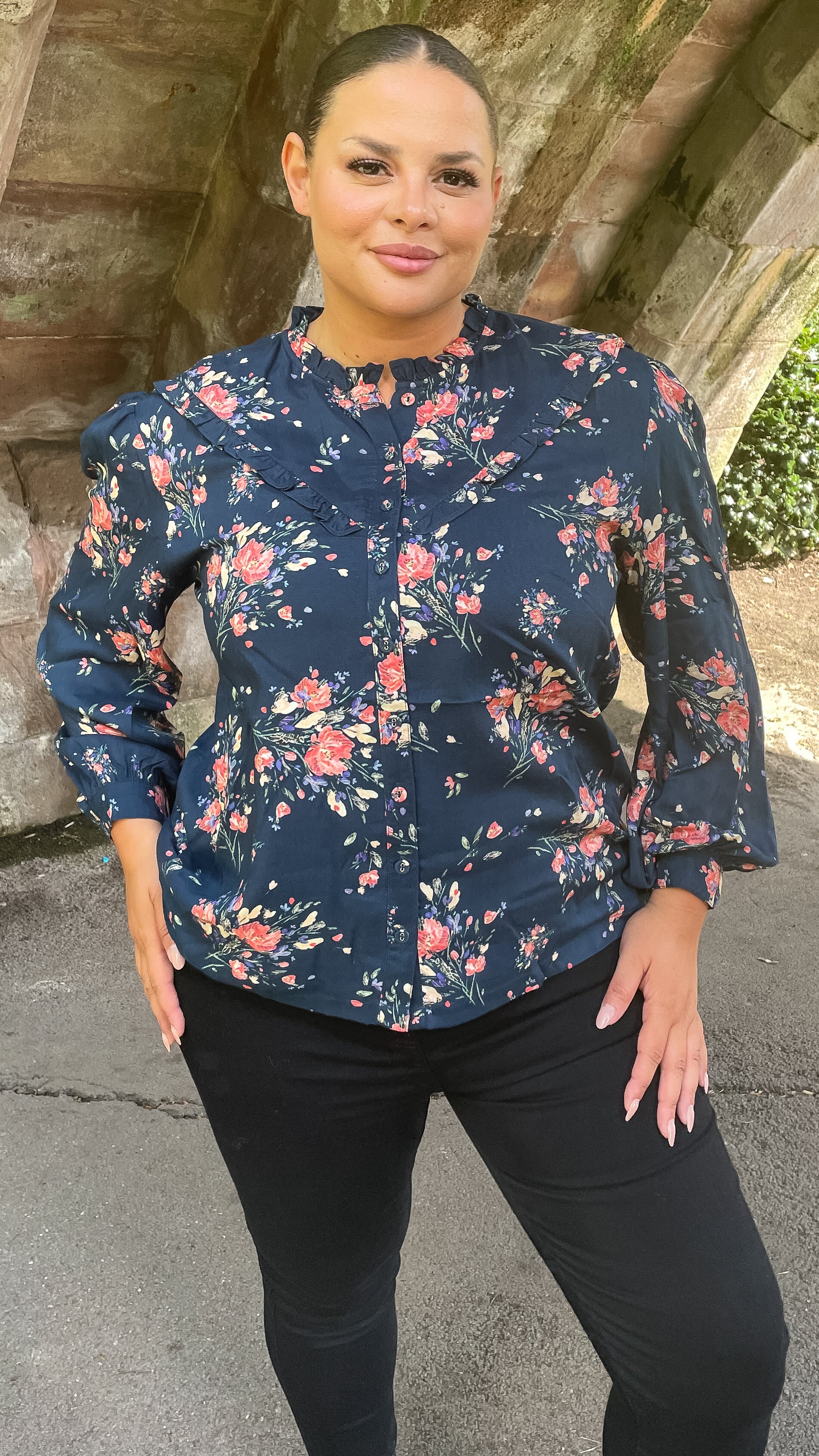 -70%CurveWow Frill Detail Blouse Floral Navy—