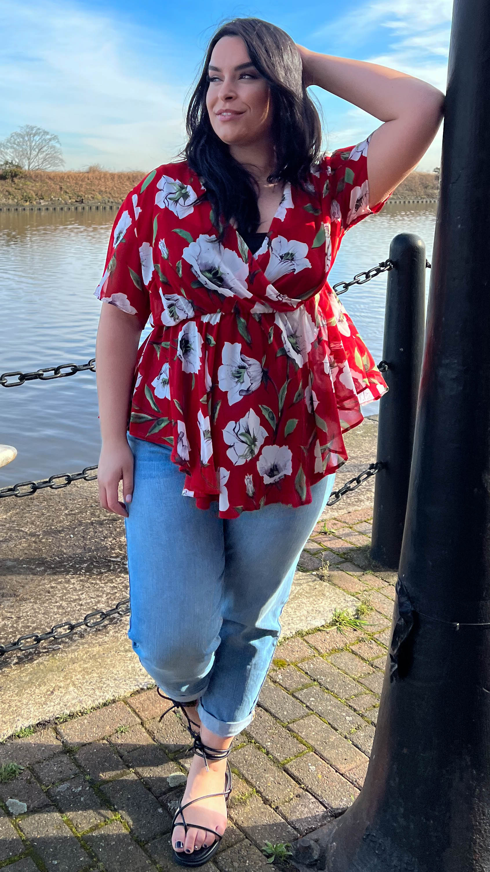 CurveWow Dip Front Wrap Top Red