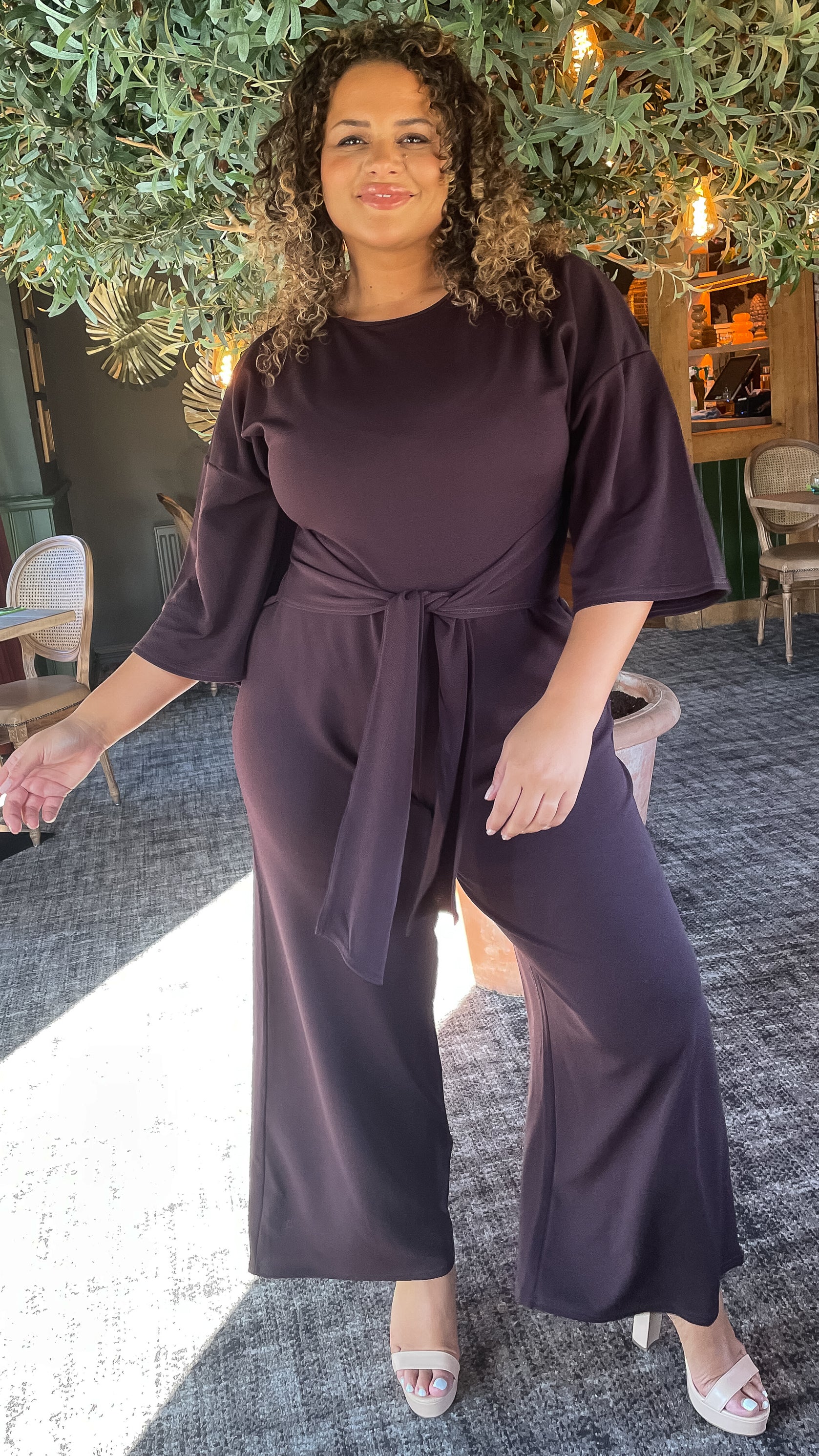 CurveWow Kimono Sleeve Jumpsuit Chocolate