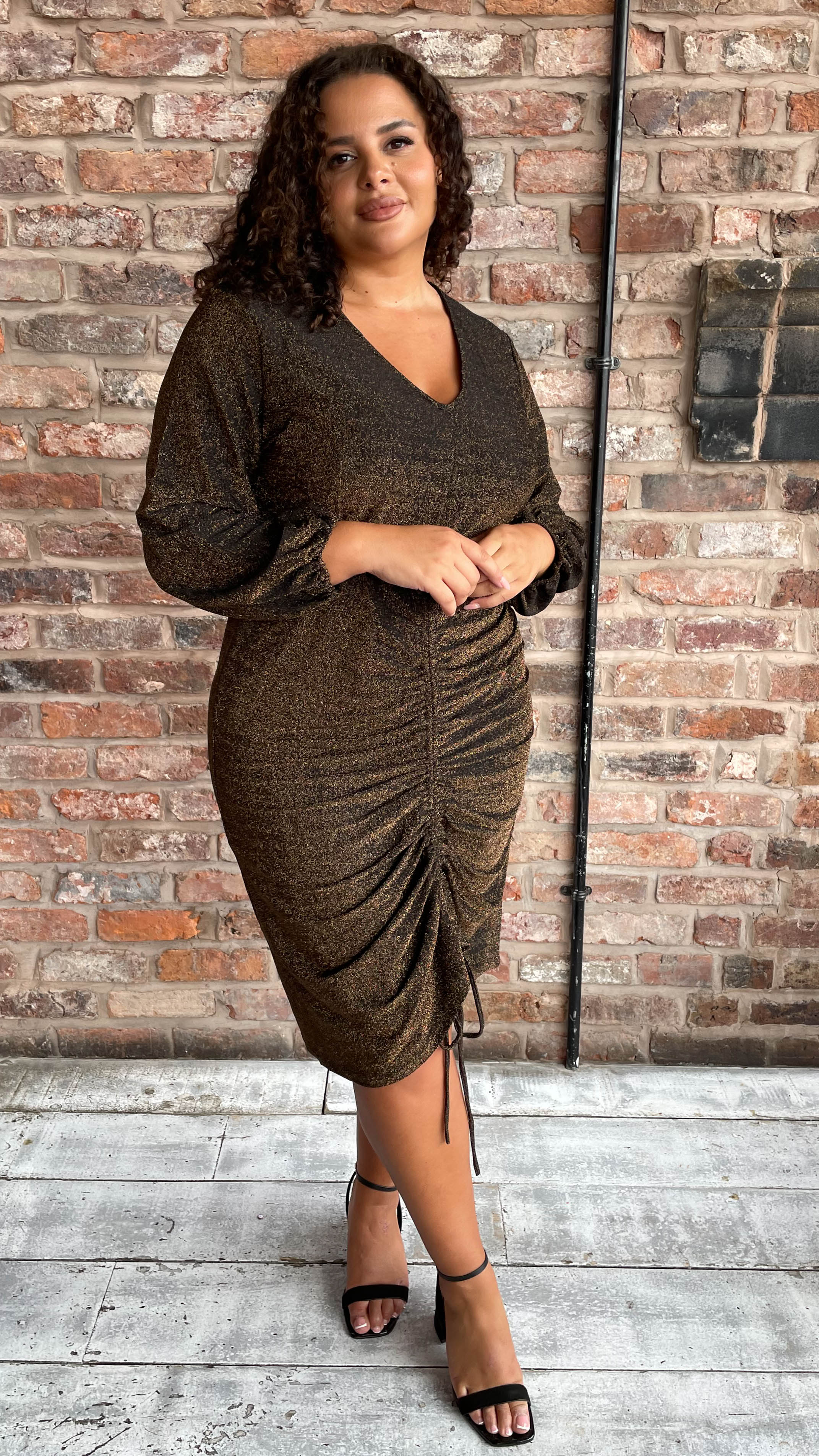 CurveWow Ruched Glitter Dress Bronze