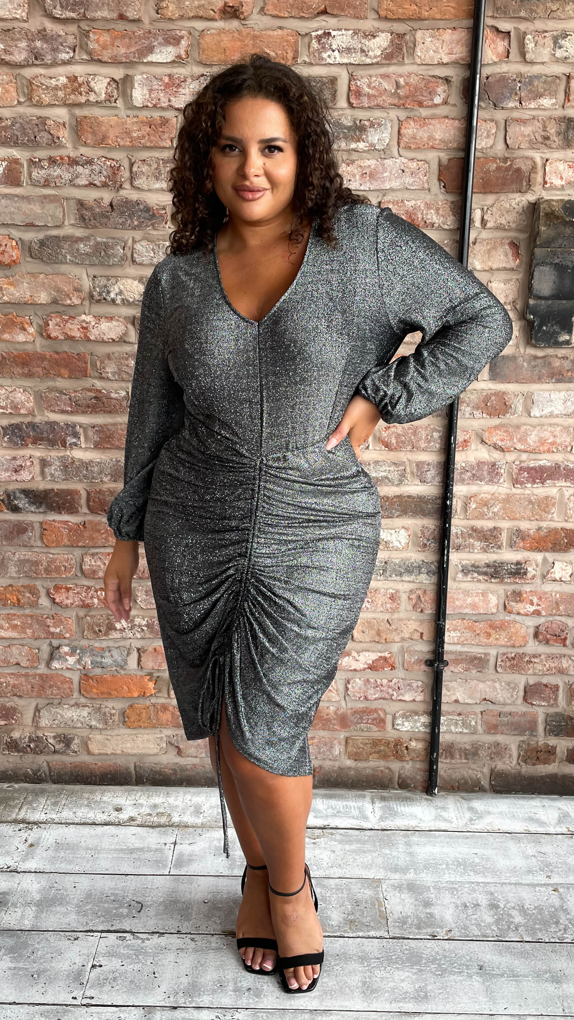 CurveWow Ruched Glitter Dress Silver