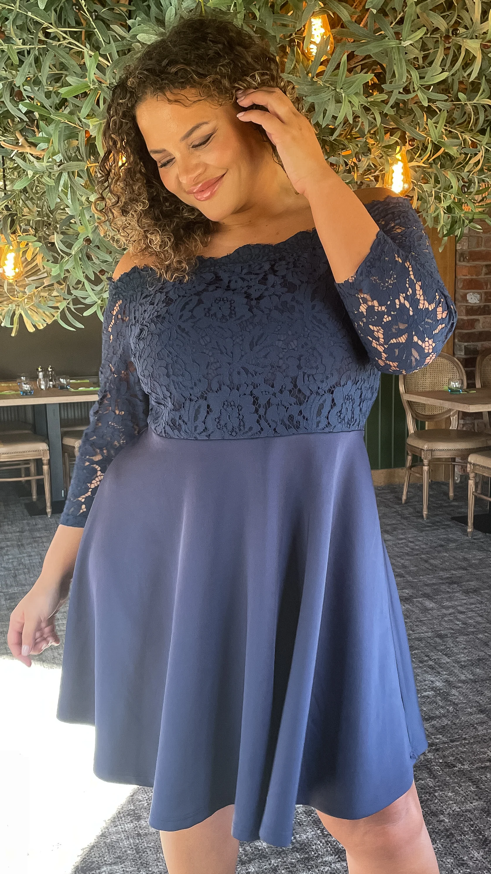 CurveWow Scuba Lace Bardot Dress Navy