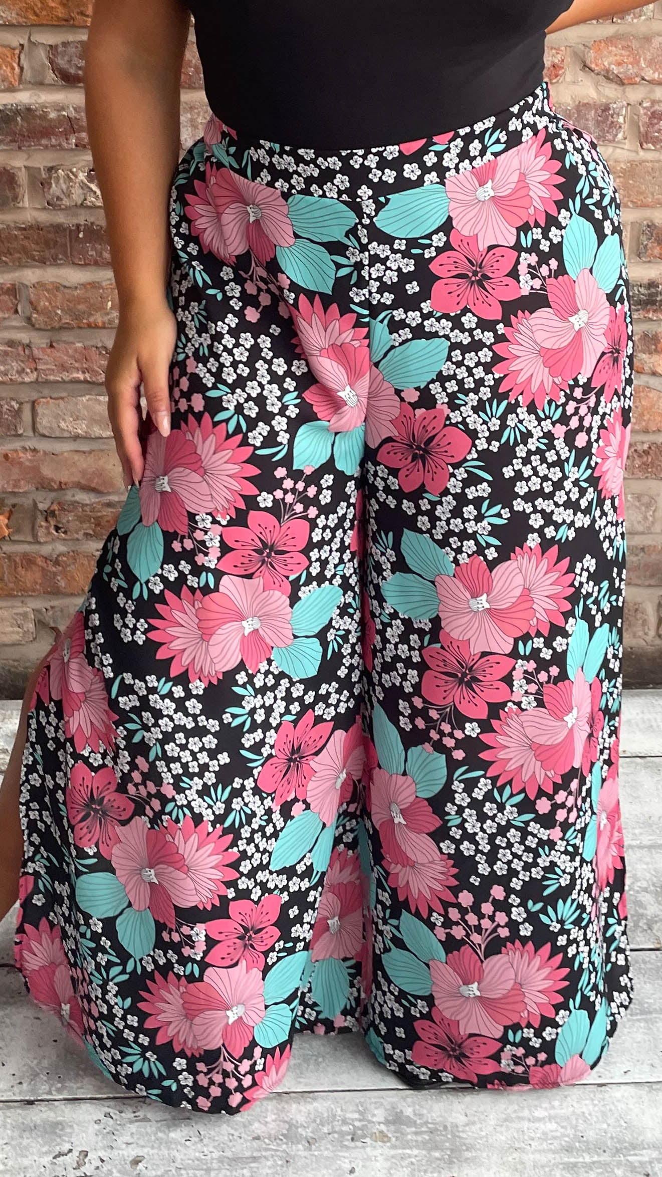 CurveWow Split Leg Beach Trousers Tropical Print